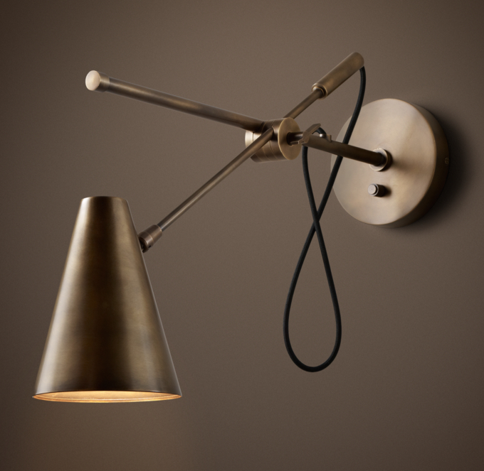 Restoration hardware metal lampshades (2) aged steel fits most rh sconces. Collection by home design minimalist. Amazing gallery of interior design and decorating ideas of restoration hardware sconce in bedrooms, decks/patios, bathrooms, entrances/foyers by elite interior designers. By ermegaon march 7, 2017 139 views. Panel bed with corner brackets shown in waxed brown oak with brass.